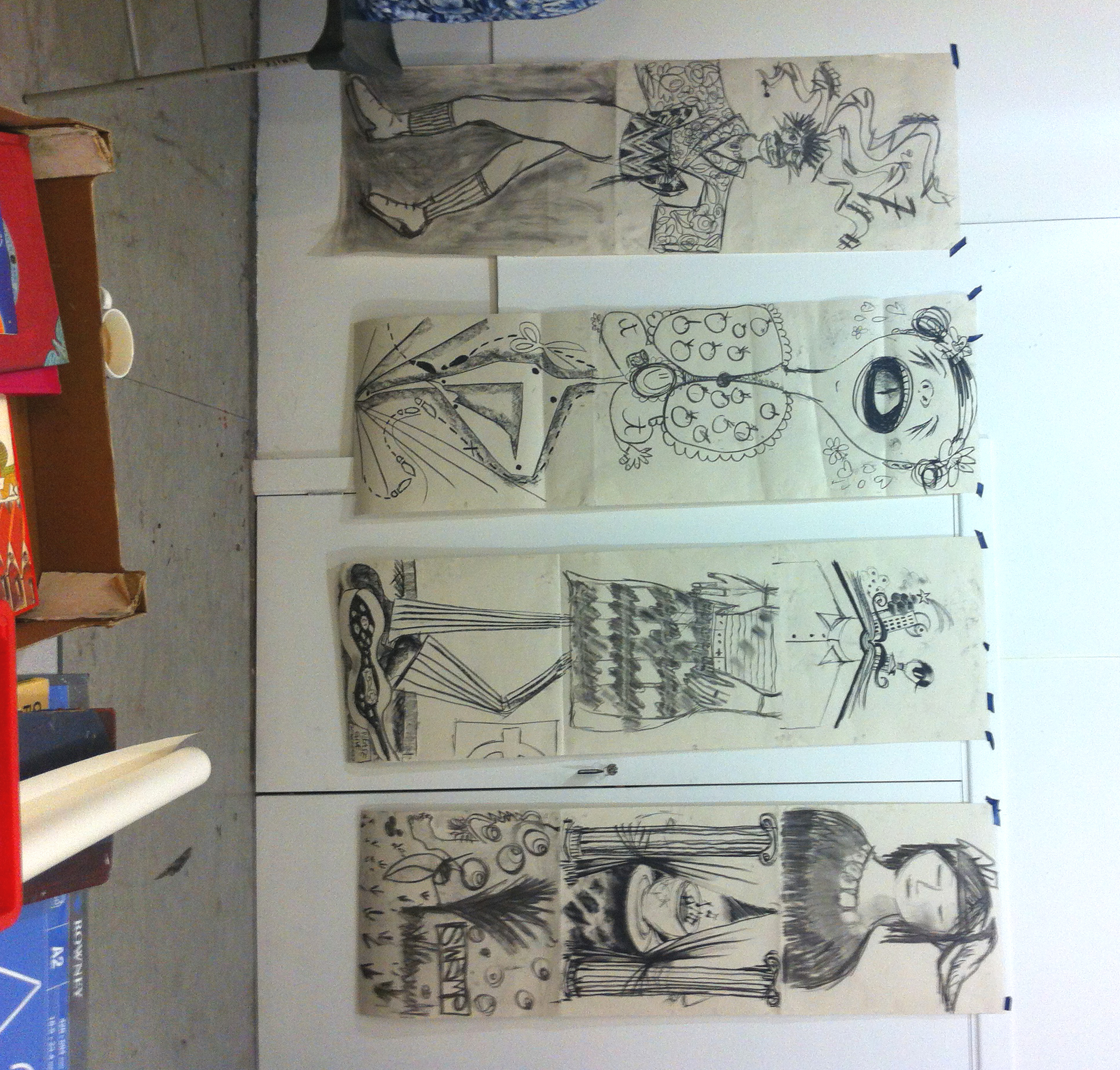 Here are the finished works. There are only four of us – it’s a really small group, which’ll be great in all sorts of ways I think.