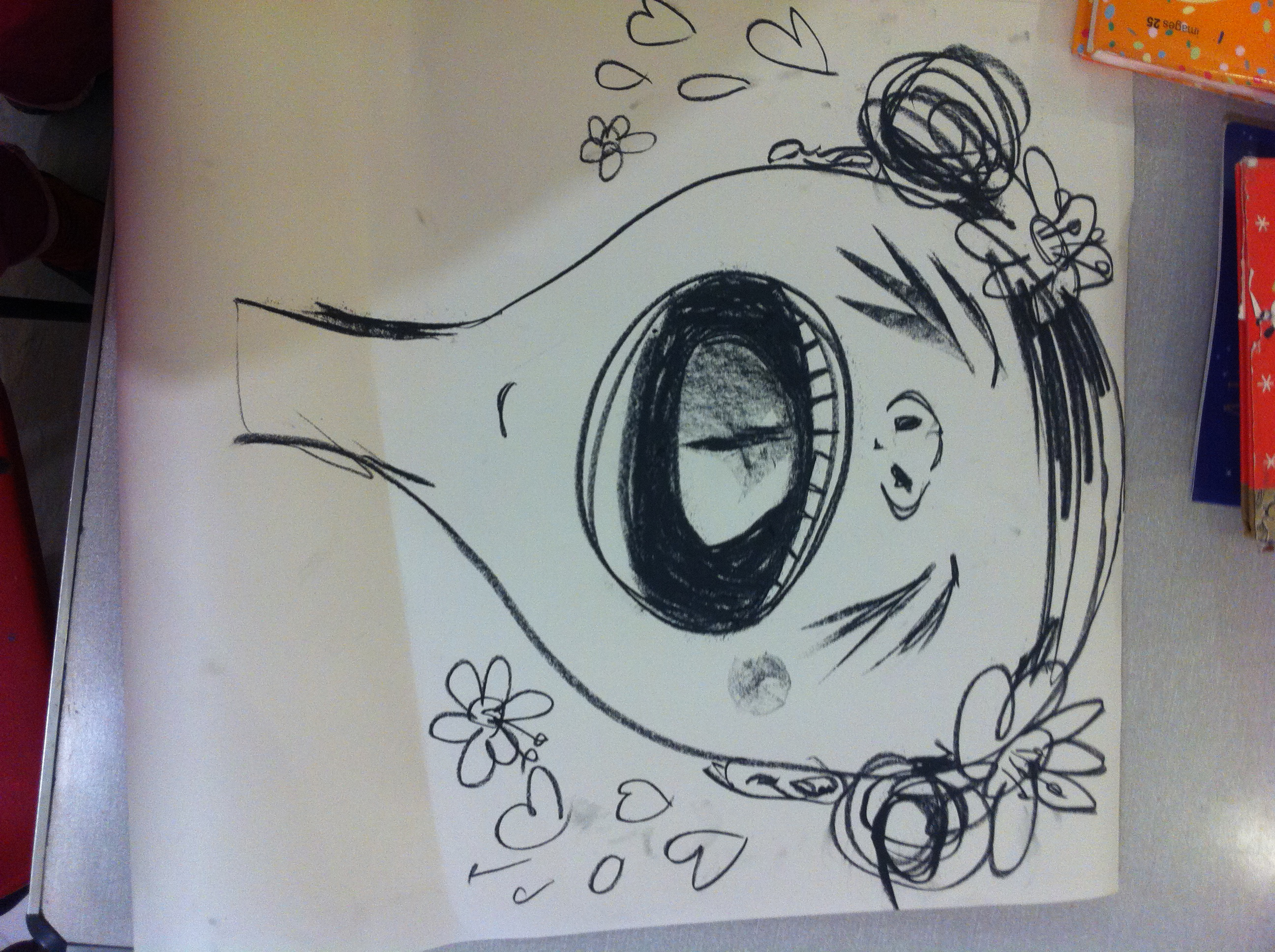 When we were asked to draw enormous body segments, as part of a giant game of ‘Picture Consequences’ (also known as ‘Exquisite Corpse‘), the first one I drew was this yawning girl. She’s symbolic of the tiredness I was already feeling, at being out of the house when I’m normally winding down ready for bed. Yes, I am a lightweight.