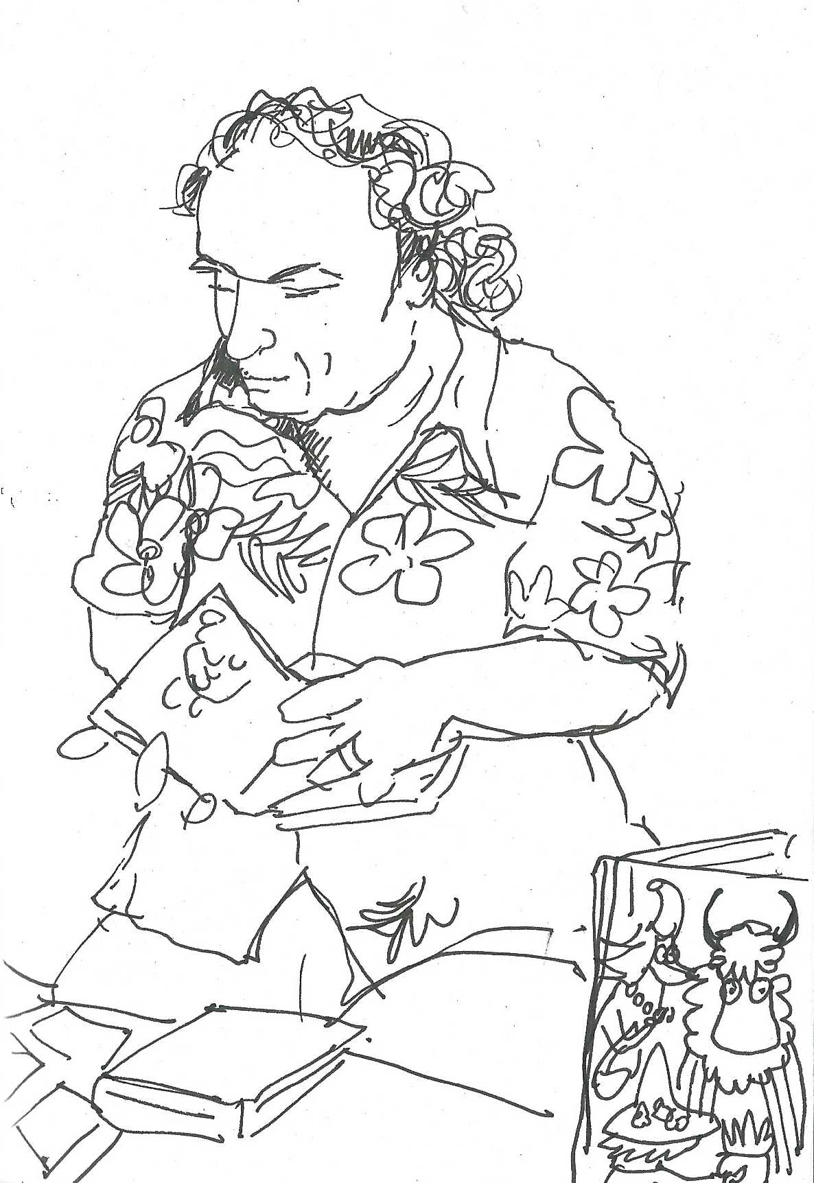 The tutor said this: the pictures you are drawing today will have something in common with the first picture you ever drew, when you were a kid, and every picture since. That might be the subject matter, the colours, or the line.
