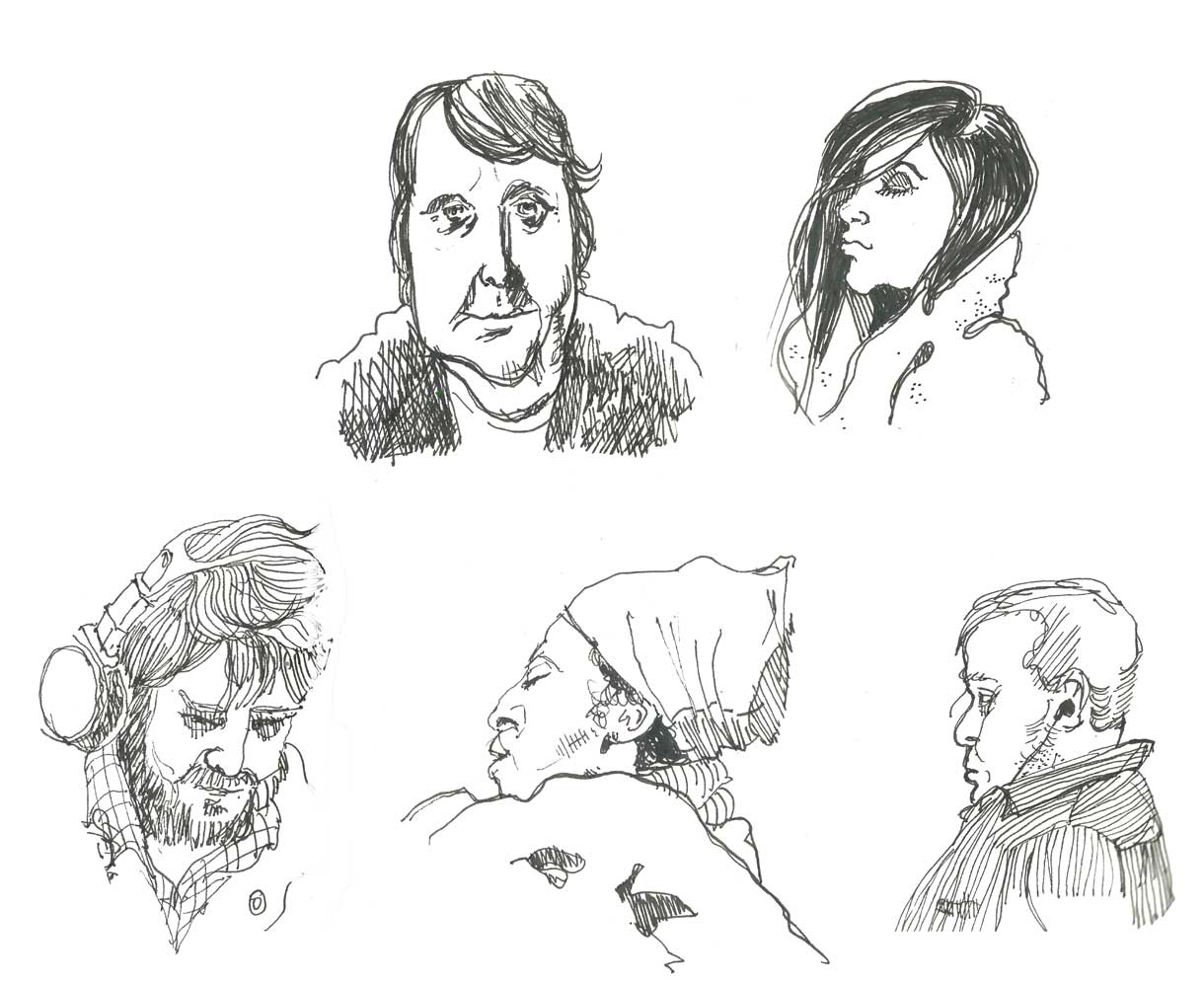 I absolutely love doing this kind of drawing. I keep wondering if there’s a niche for it – like, I could get hired to go to someone’s wedding and draw all the guests (I’d hate that actually – it’d be so stressful and there’d be a terrible pressure to get flattering likenesses).