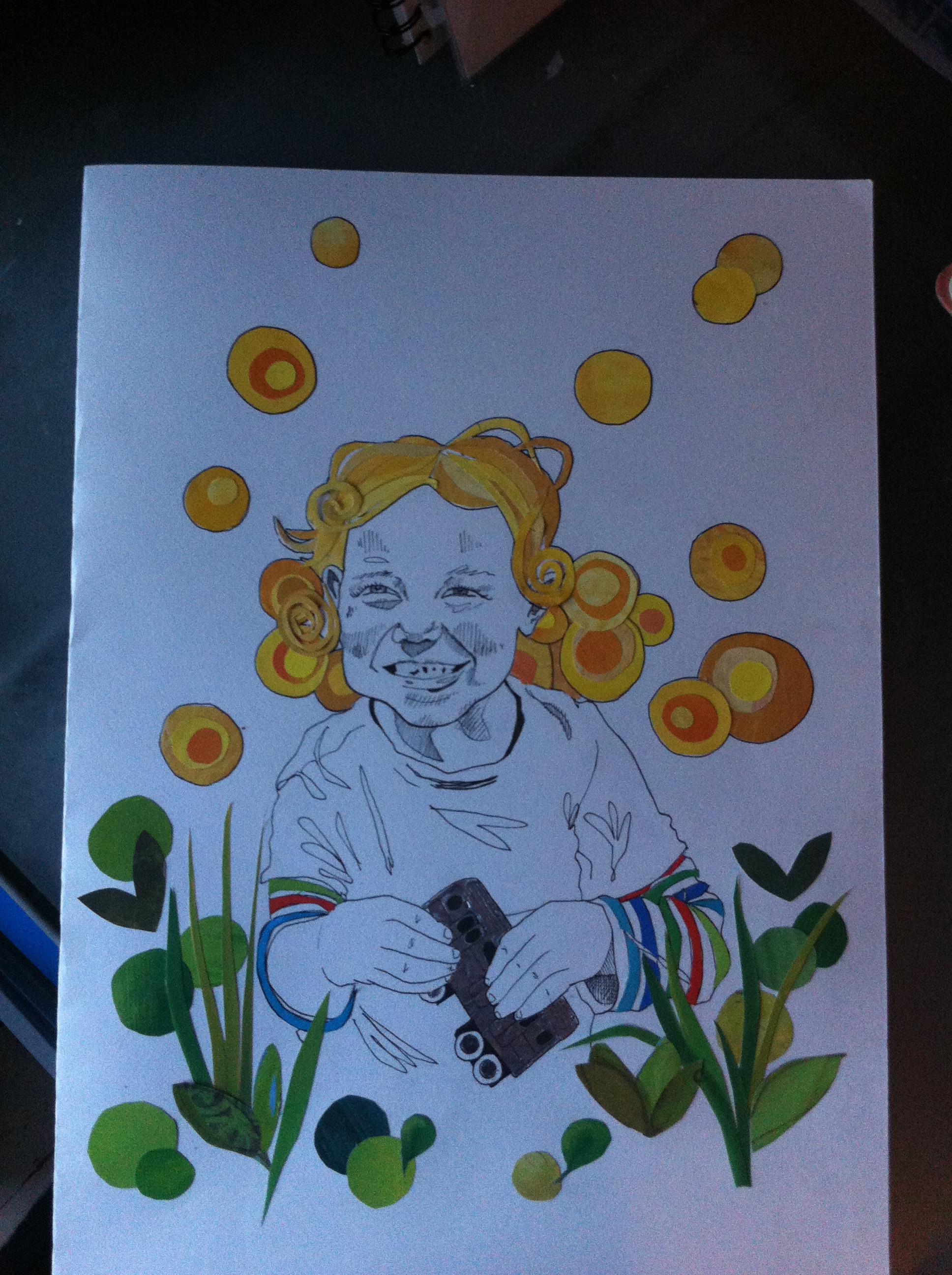 When I thought of Leo, I thought of his wild blond curls, so I wanted to make that into the main focus. I decided that the hair would be the collaged part.