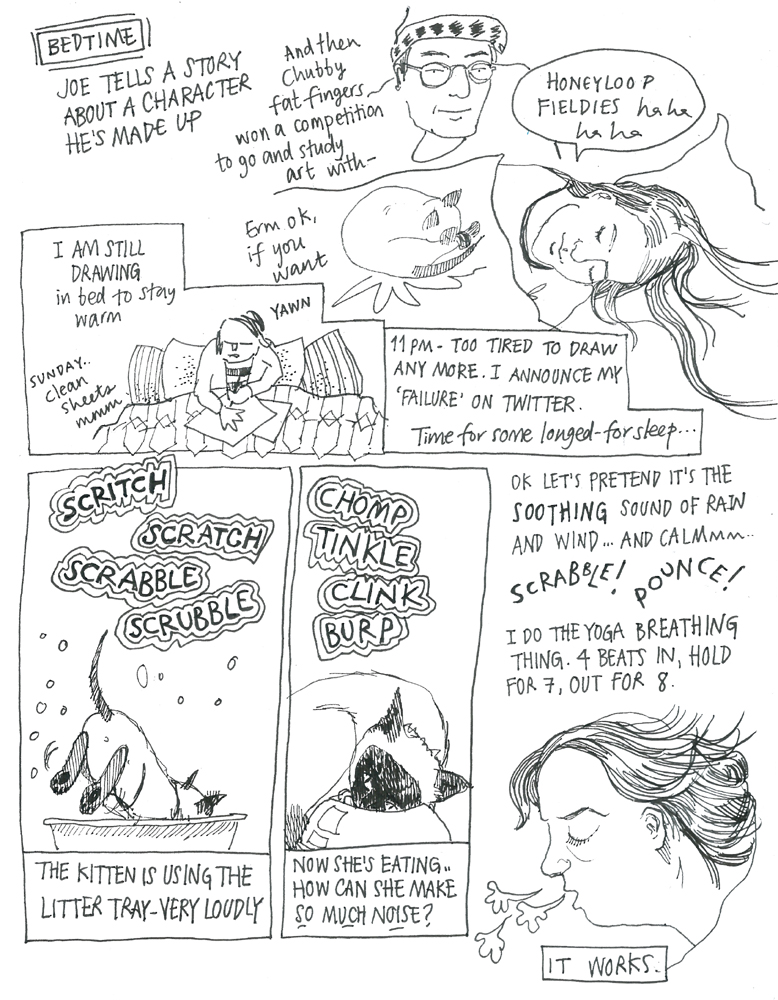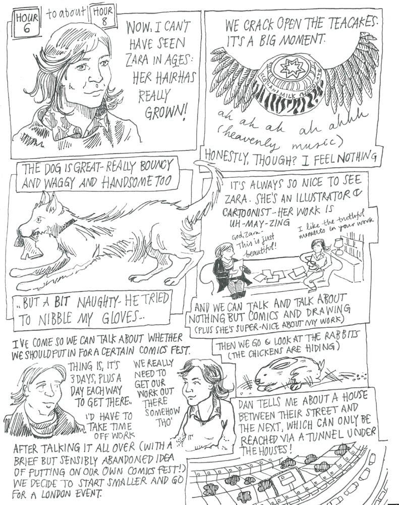 I only managed to finish off the last three pages today, so I am posting my complete Hourly Comic Day comic 24 hours late. Here it is.