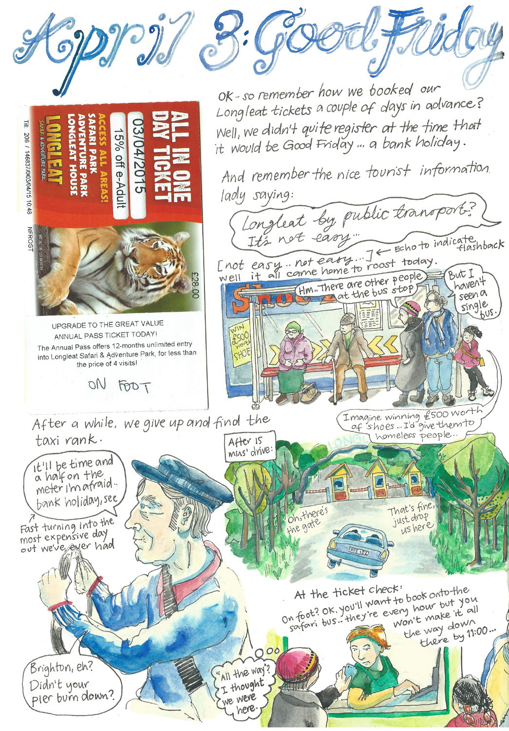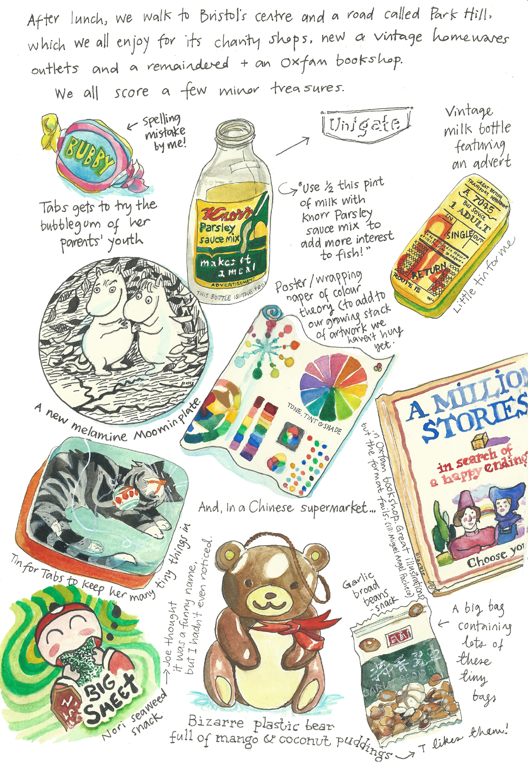 I’ve been thinking about why it’s taken so long, and my best guess is that I broke my own guidelines for making sketch diaries: I hardly collected any labels/leaflets/tickets this time, and did a lot more painting. I cared too much about pictures looking right (not that this means they all ended up perfect – far from it!)