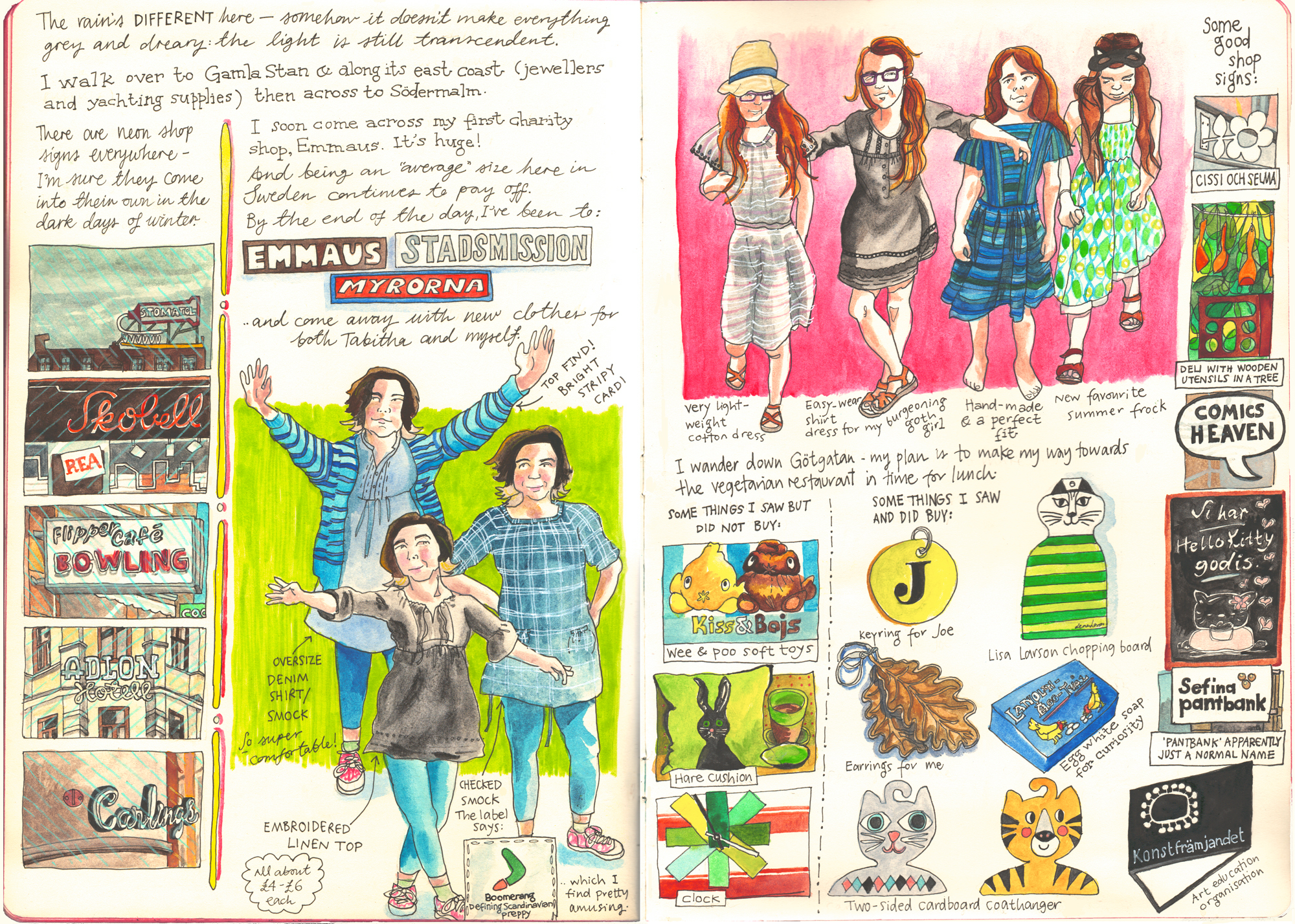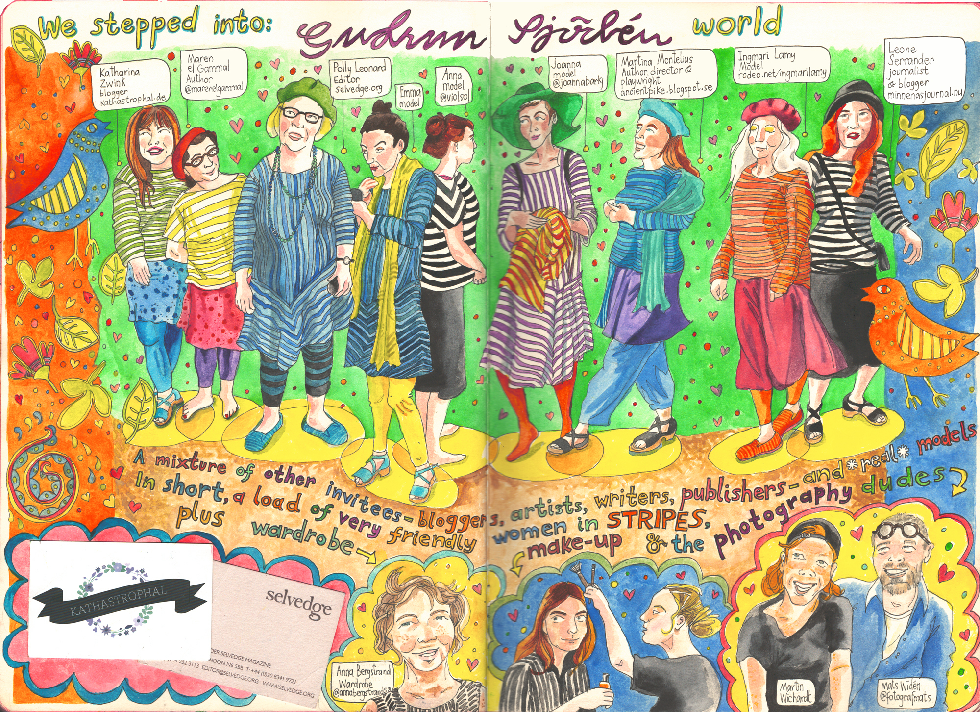 Drawing this sketch diary allowed me to relive the whole 36 hours, bringing back all the enjoyment again. Massive thanks to Gudrun Sjoden for such a fun trip, and wonderful memories. Oh and by the way, the friend D you see in these pictures is http://www.ivyarch.co.uk. Visit her blog to see the amazing clothes she makes!