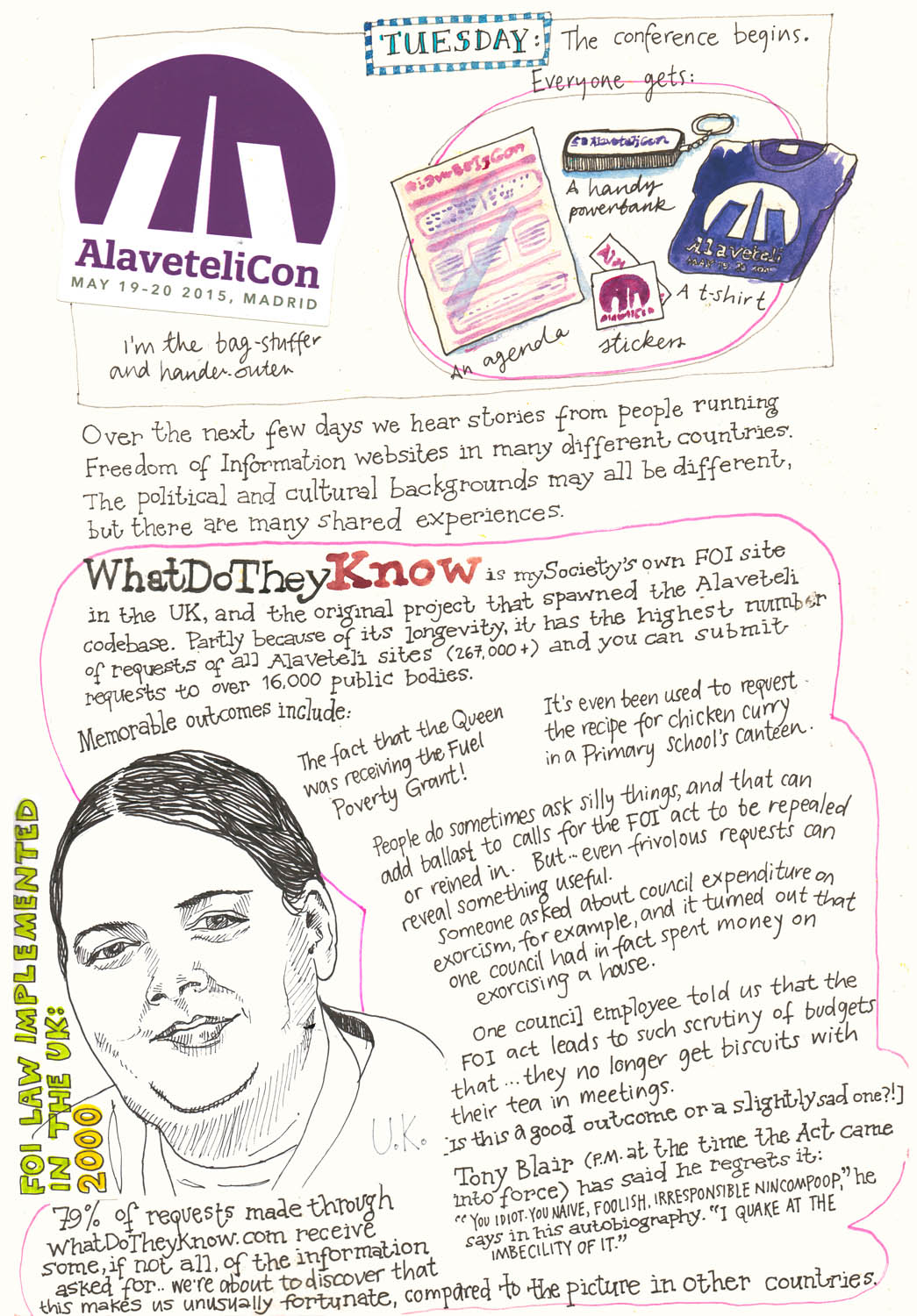 [I don’t usually Photoshop my sketch diaries, but I deliberately drew these figures in closed lines, knowing that I’d be able to drop in a background. The floor where we had lunch was this kind of crazy paving – much easier to do like this than to draw laboriously].