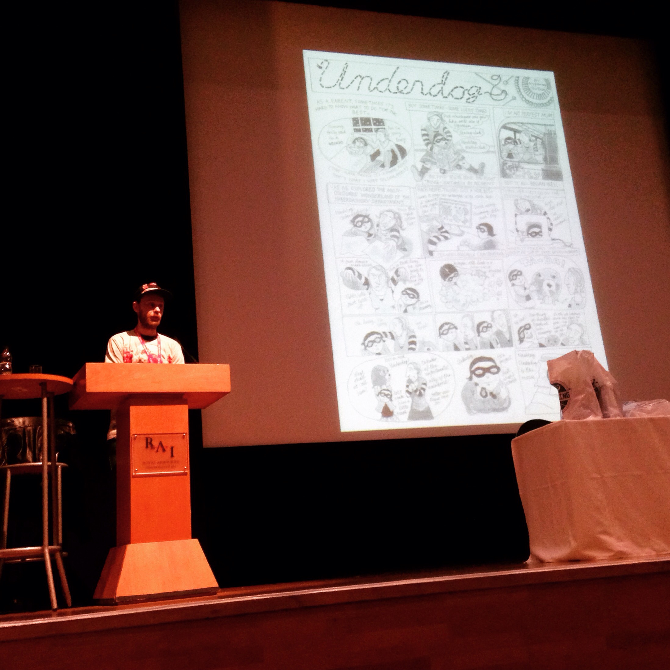 Sorry for the rubbish phone snap, but here’s Underdog projected onto the big screen at the prize ceremony. You can read the strip here.