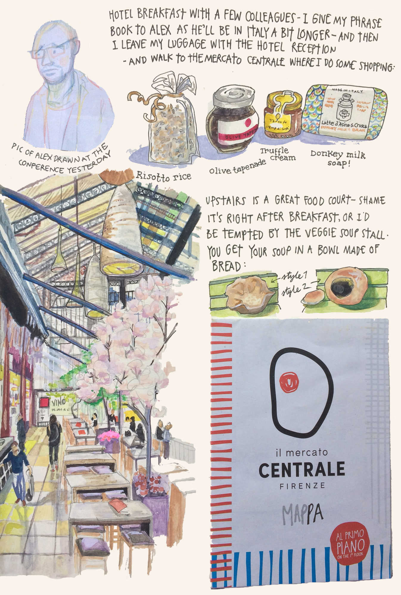 I’m still only able to dedicate around 90 minutes a day to artwork, on top of the dayjob, household duties, etc. This Diary took six months (pretty much – the time was interrupted by a couple of other deadlined comic projects which I recorded here) to draw, followed by a further month or more cleaning it up, and there’s still tons I’d redraw or tidy if it was headed for publication anywhere more formal than my own blog. That doesn’t leave much time in a year for any other kind of work. I’ve even been on another three trips since Florence (including an eminently diarisable and puffin-heavy trip to Berwick and surrounds) which I can’t record with this amount of detail. And that’s what I’d want to do. One solution would be to pull out small strands or record less, I suppose, but I don’t feel massively inclined to do that.