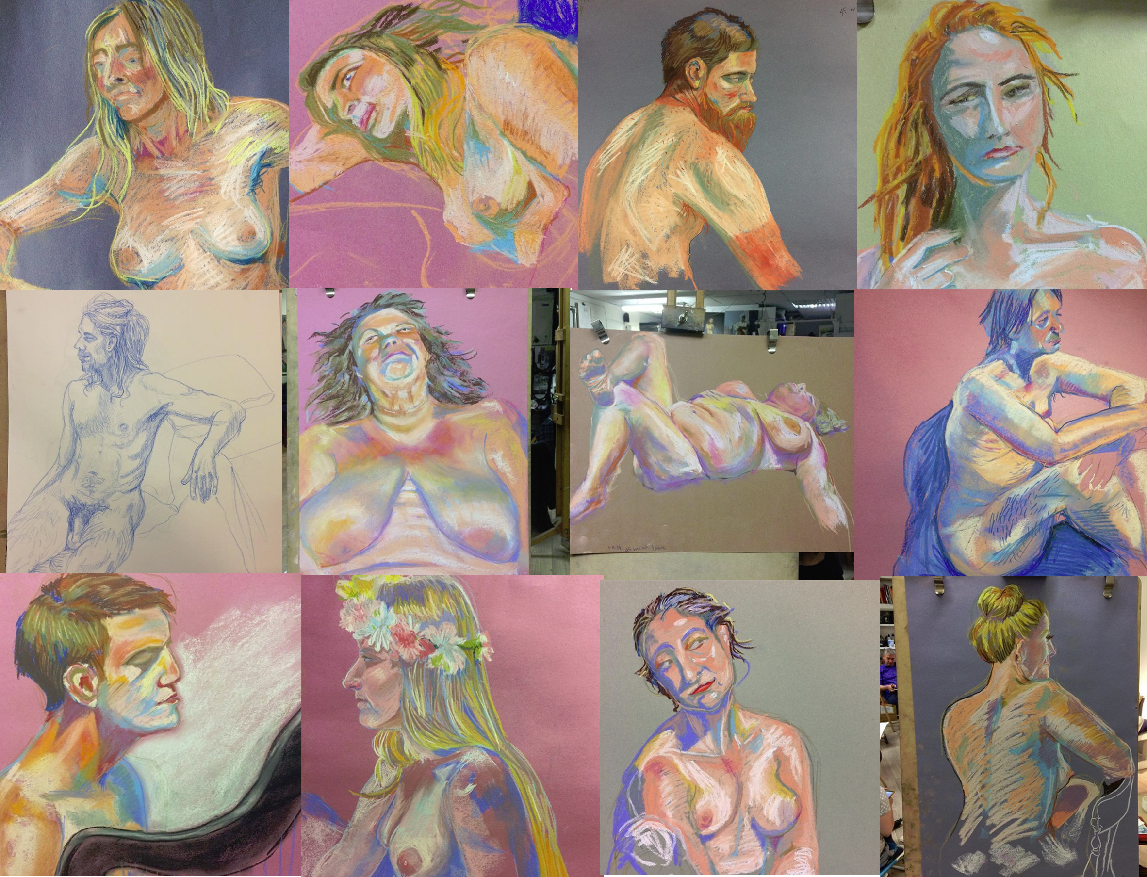 This is the month when I shared some life drawing I’d done in pastels. I’ve been going along to life drawing sessions most weeks though, so there are plenty more where that came from. Here are a few (click to see them larger):