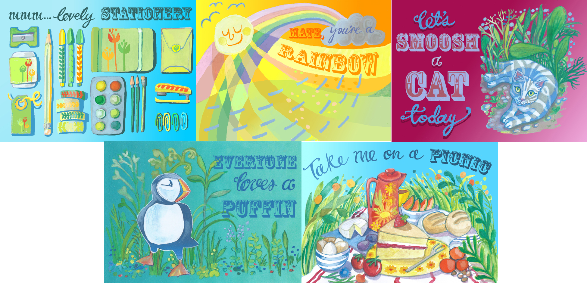 I designed some nice postcards to sell alongside my comics at festivals. I still need to sort out a shop so I can sell these online too! Click to see them bigger.