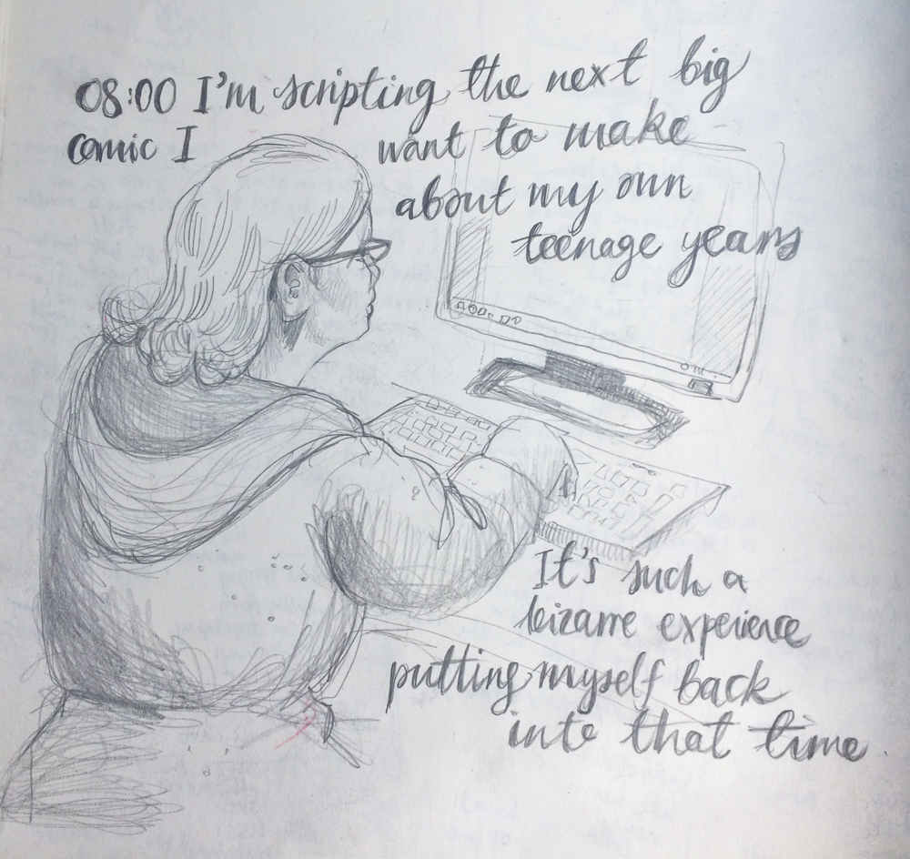 8:00 I’m scripting the next big comic I want to make, about my teenage years. It’s such a bizarre experience putting myself back in that time.