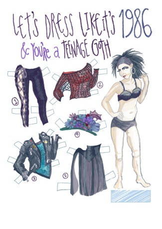 PS, I should also mention that I’ll have a handful of Satin and Tat zines to sell. These are extra copies of my entry, so they contain the first 12 pages along with a synopsis etc. Talk about a very limited edition: there are only four or five available. As an extra incentive I’ll include a goth cut-out doll and one of the prints of the kimono’d bike rider as well.