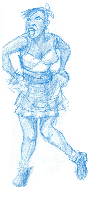Character design attempting to show extroversion. Also – rah rah skirt!