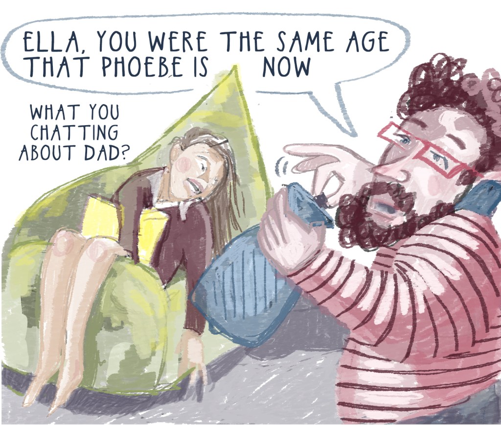 It’s fun making sure these details are historically accurate. And then there’s the ‘modern day’ storyline, in which Ella’s daughter speaks in a very current vernacular.