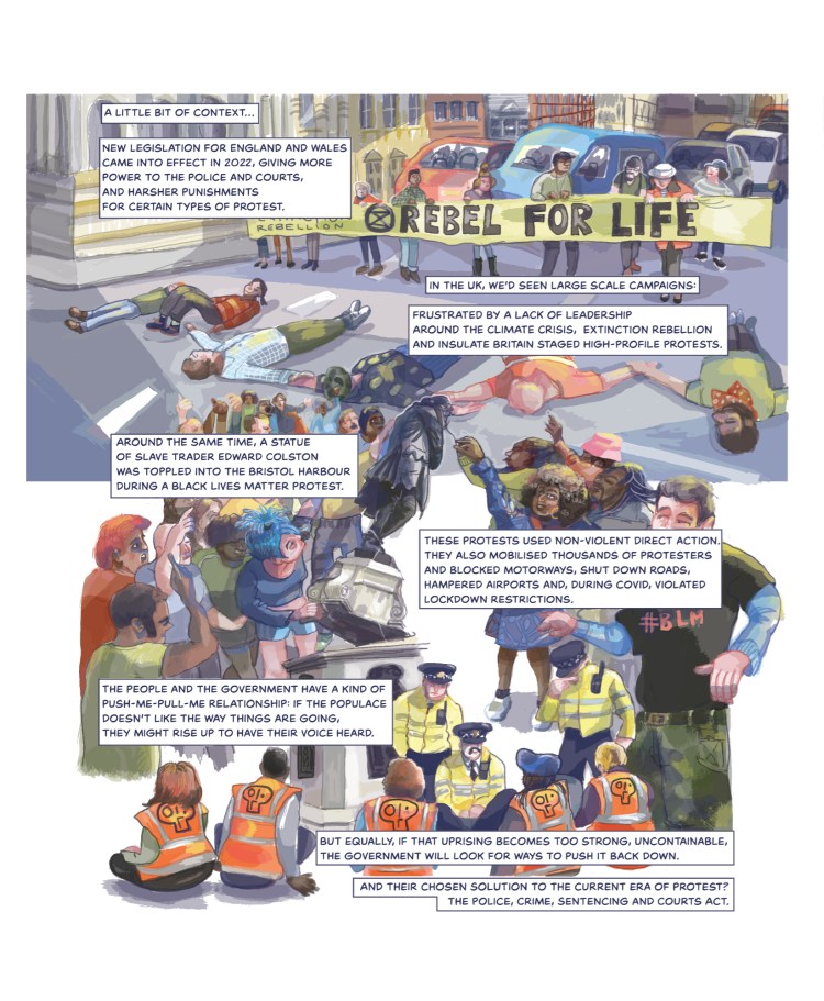 My 2021 Inktober project – where I drew a different protester ever day of the month – hit the zeitgeist, what with the government clamping down on our right to protest, at the same time as giving us all more to protest about.